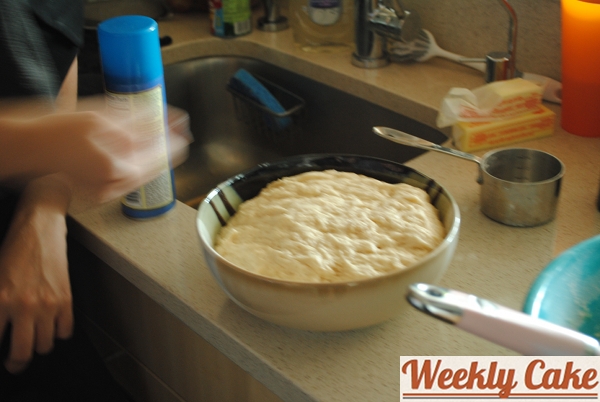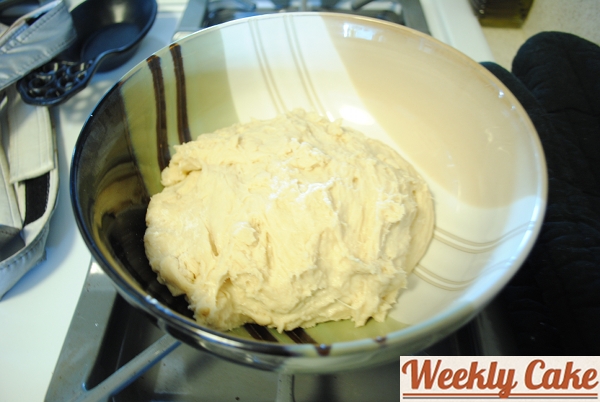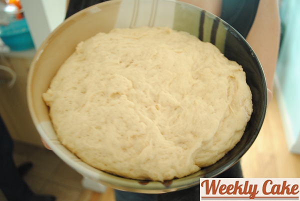 The cake has a crust, so the first step was to make the dough and let it rise while we got to work on our other cake.