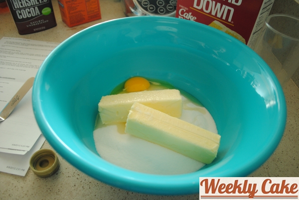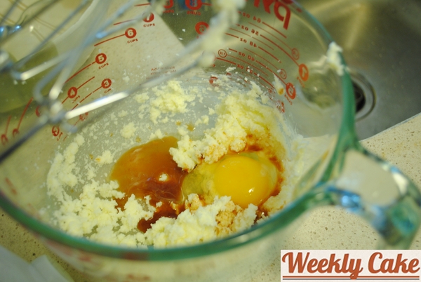 In a separate bowl, we creamed together the butter and sugar and then added the egg and vanilla.