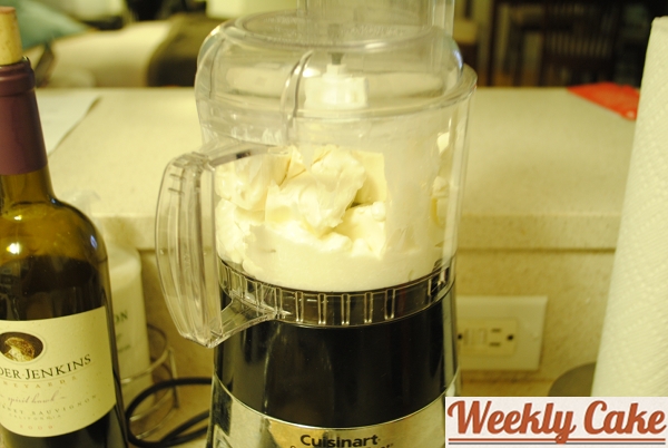 Next I dissolved the packet of black cherry JELL-O in 2/3 cup boiling water and let it cool for a few minutes. Then I placed the cottage cheese and cream cheese into my food processor and processed the mixture until it was smooth. As indicated in the above video, using the food processor is important because it will pulverize the cottage cheese bits resulting in a smooth batter.