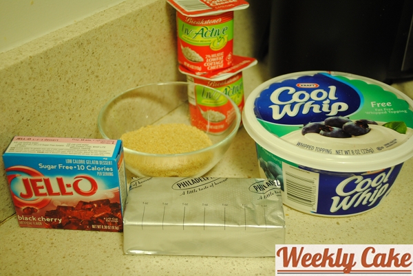 The title of this cake is very long, but there are so many special details I need to emphasize – It’s no bake! It’s low calorie! It’s low fat! And it’s black cherry flavored.