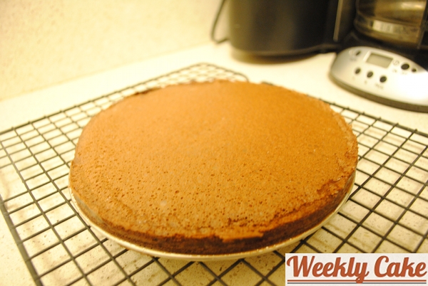 I poured the batter into the pan and baked the cake for 20 minutes, rotating halfway through. The directions said the cake is finished when a knife inserted into the center of the cake comes out clean.