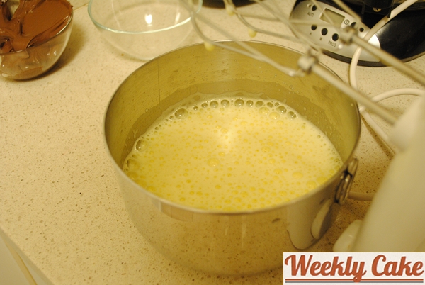 The first step was to whip the eggs till they were light and airy, about 6 minutes (I set the timer).