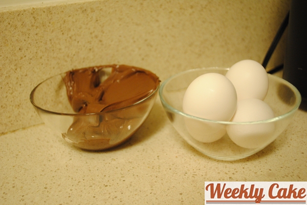 It started with a post I saw on Buzzfeed last week showing a bunch of two-ingredient recipes. The very first of the 34 Insanely Simple Two-Ingredient Recipes was for Nutella cake. It’s simply eggs and Nutella. I clicked over to the blog it linked to, Kirbie’s Cravings, to get the recipe. Here’s the mise en place.