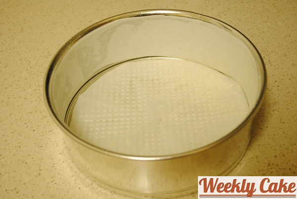 The instructions indicated I needed to line a springform pan with parchment paper, both the bottom and the sides. I sprayed the pan as well as the paper with cooking spray in order for the paper to stick.