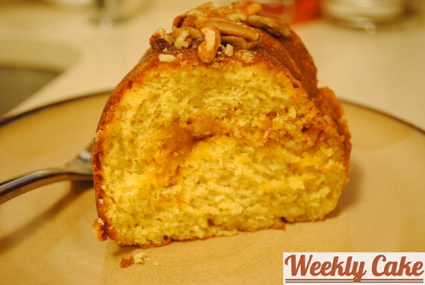 I drizzled the glaze over the cake and sprinkled it with chopped pecans.