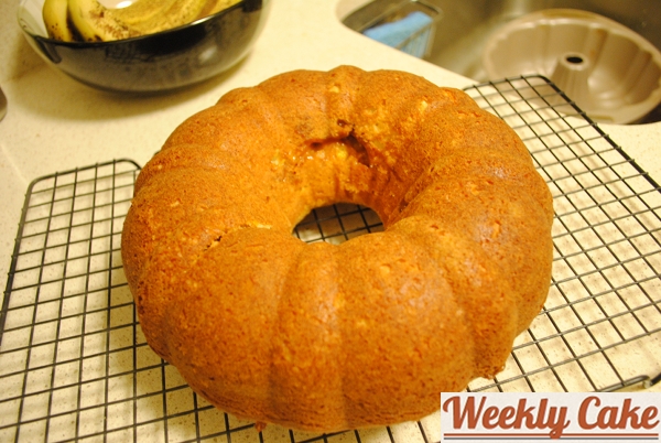 The cake baked at 350 degrees for about 30 minutes. I let it cool in its pan for 30 minutes on a wire rack.
