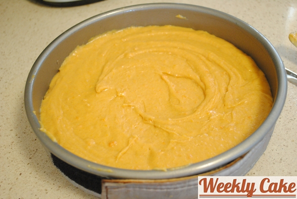 I sprinkled the top of the cake with some of the leftover chopped pecans I used on my sweet potato cake.
