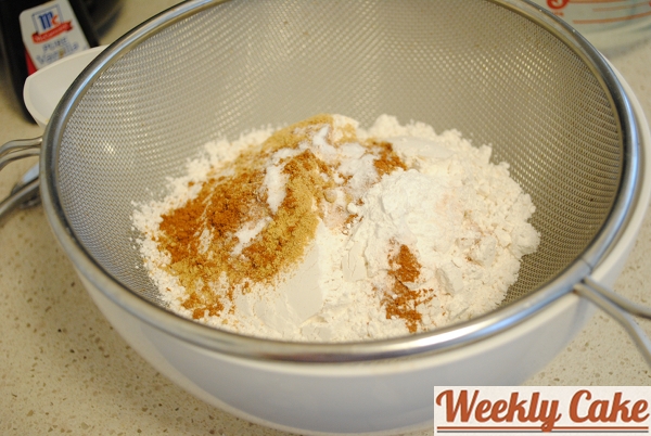 - Sift flour, cinnamon, ginger, baking powder, baking soda and salt into medium bowl. Whisk to fully combine.